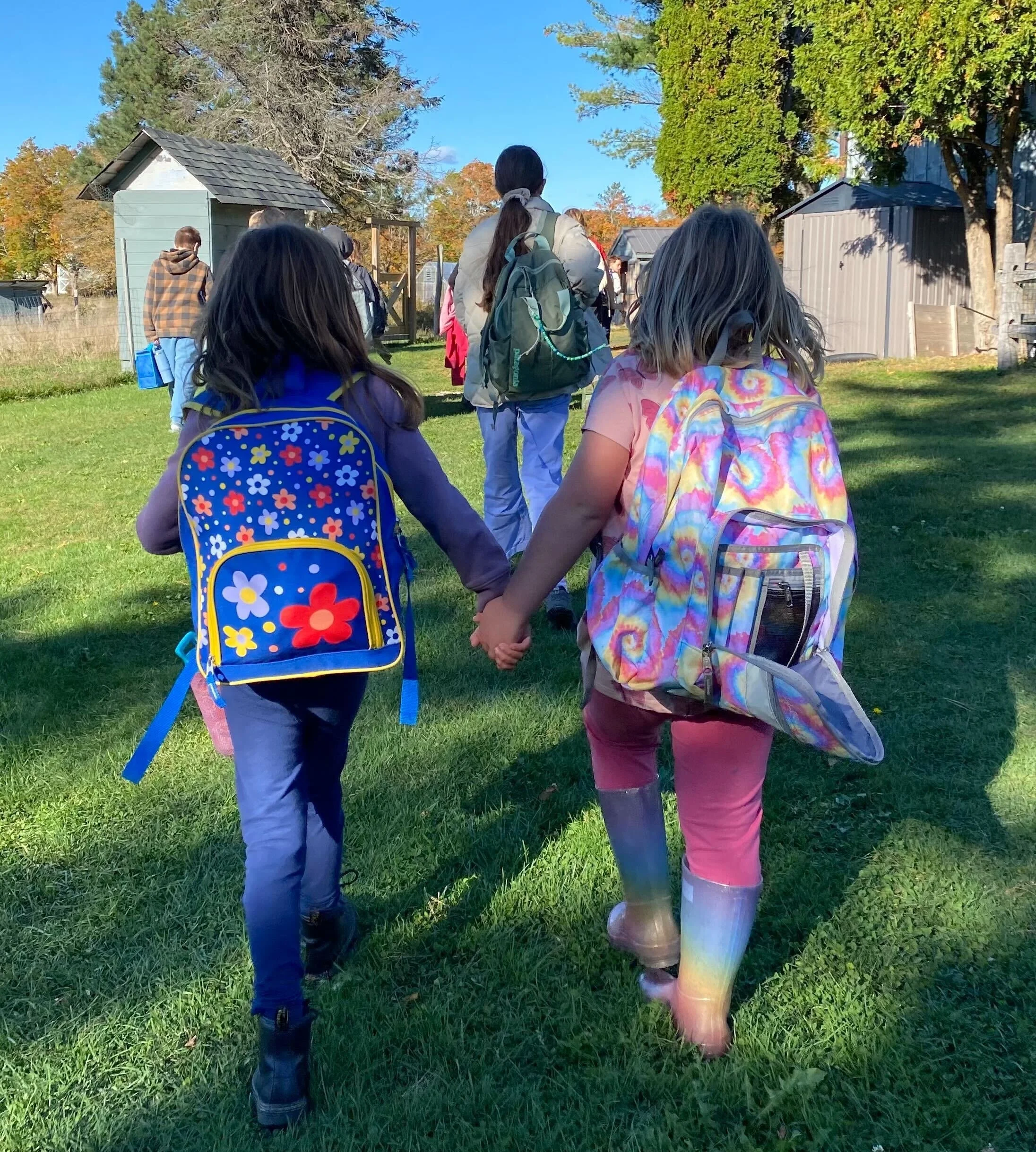 Lower School students move about our campus for parts of their day and spend time exploring our woods, fields, yurt, and getting lots of time to play and build gross motor stamina. All students enjoy a full hour of lunch and recess, where students of all ages interact in unstructured but monitored play time.